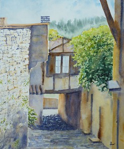 Penne Castle in southern France. This watercolour has been accepted for the International Watercolour Society exhibition in Albi between 25 and 30 march 2022. Art Connexion Mondiale to be held at Espace Art, 13 place Fernand, 81000 Albi. This watercolour recieved a  "Top 50 Award" by the French organisation. It was also in the exhibition held by IWS Holland in "Het Stroomhuis", Neerijnen, NL from 27 july to 28 august 2022.
