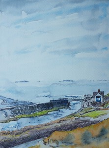 View of a coastline in the cold north. Painted during a watercolour workshop with Jan Min.